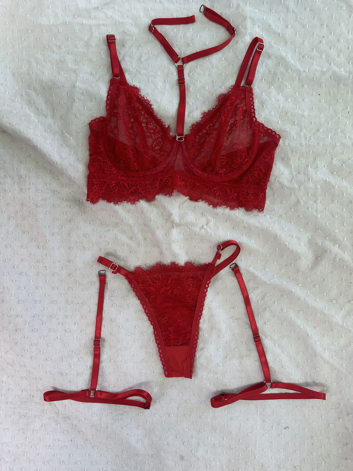 Esta confeccionado con puntilla elastiza con pelitos, que hacen ver el conjunto mas delicado y diferenciarlo de los demas.